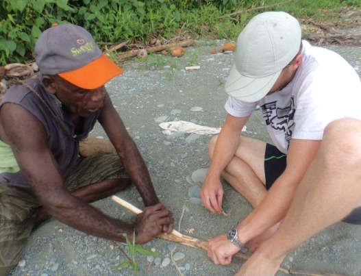 In the afternoon, we pushed on to a community in Talise, where Ben and I learned some traditional bush skills, like how to start a fire without matches!